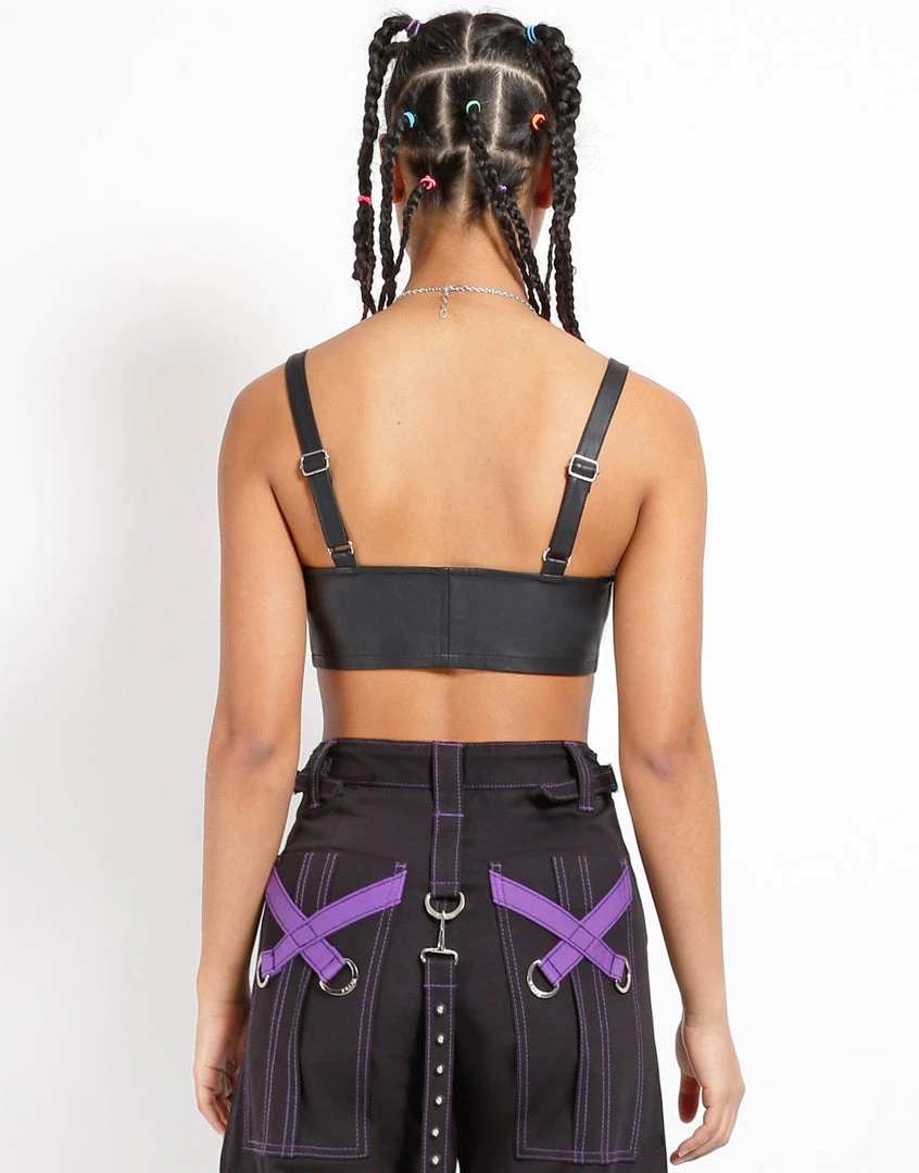 Va-va-voom! This killer bustier shirt will have your body smokin! a vegan leather front top with a belt detailing on the bust & zipper in the front