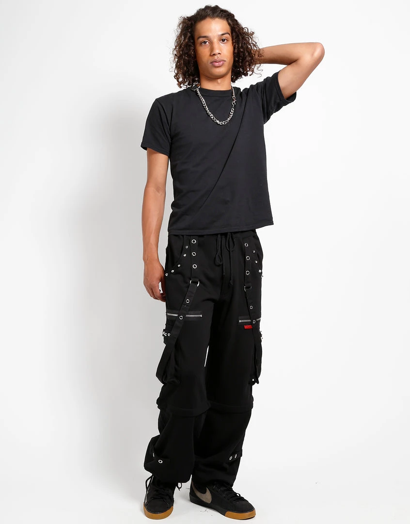 Accept no imitations! From the originator of all things DarkStreet, these classic black pants zip off into shorts and feature removable straps, D-rings, and deep pockets. Jersey knitted pants.