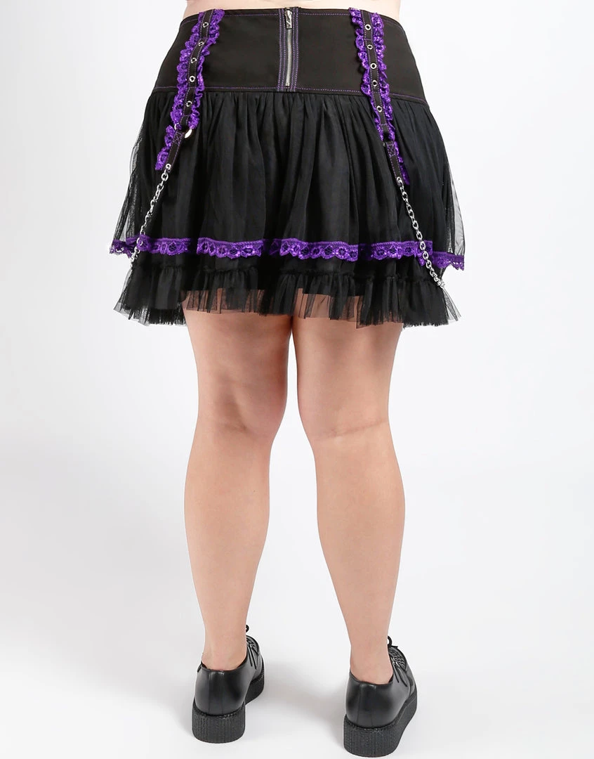 Curve Size Darkstreet Lolita: Chiffon Tutu Skirt in black/purple