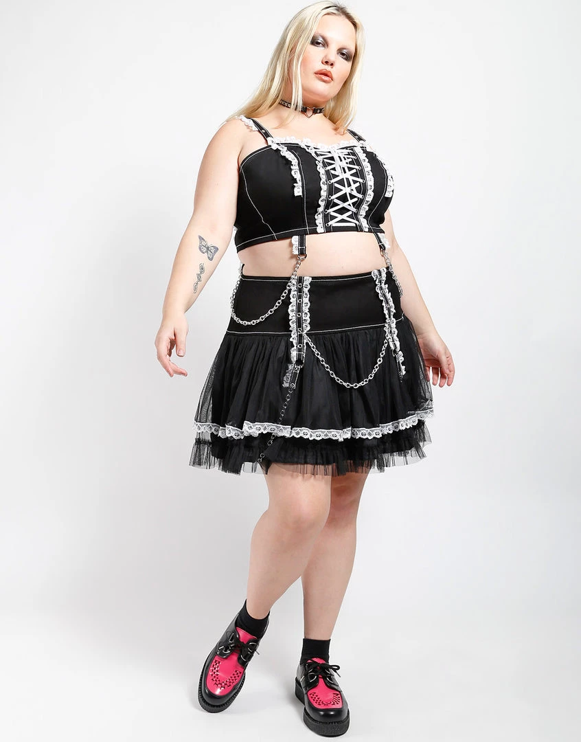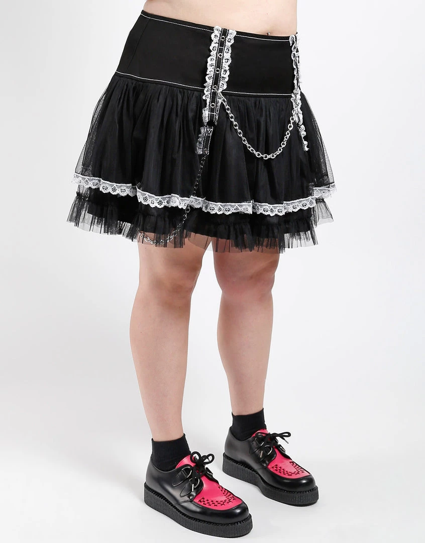 Curve Size Darkstreet Lolita: Chiffon Tutu Skirt in black/white