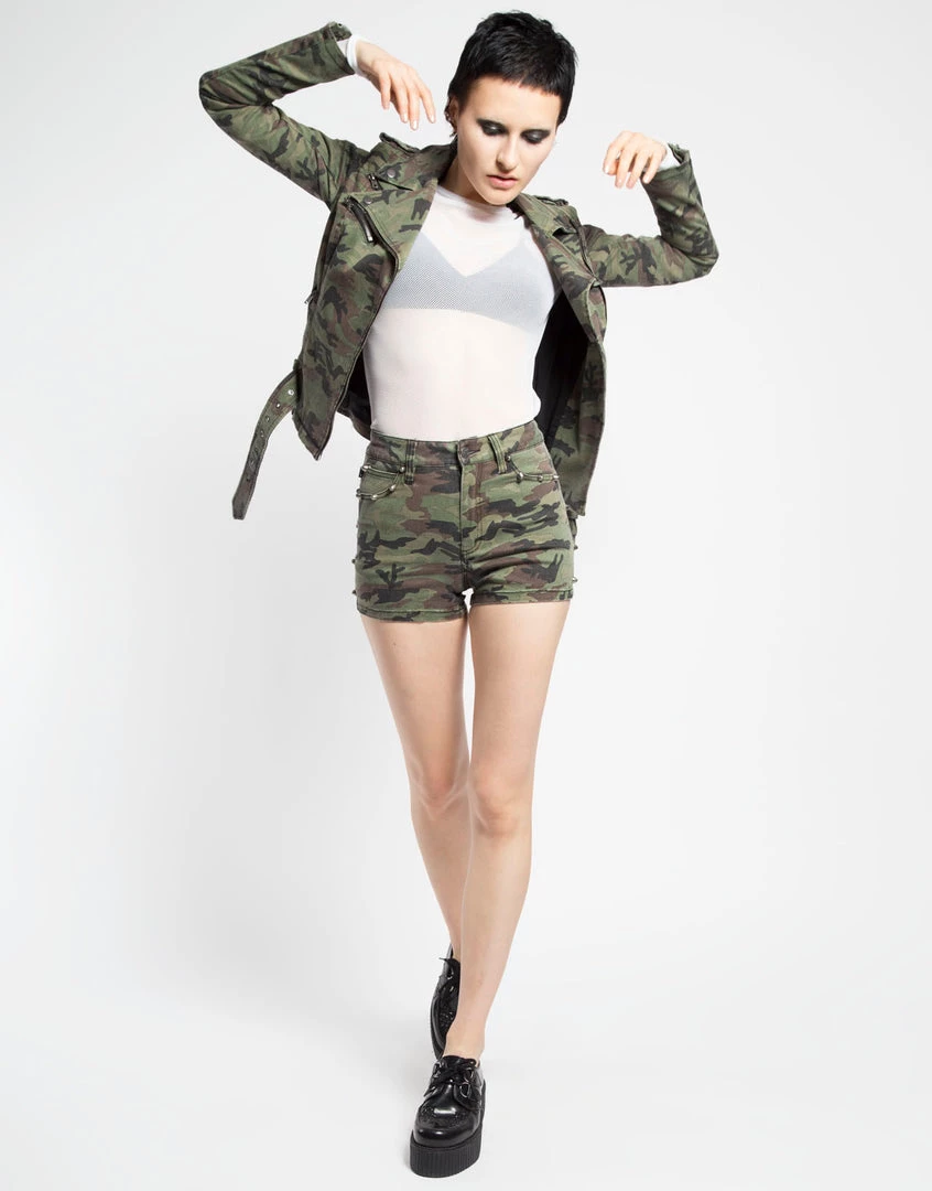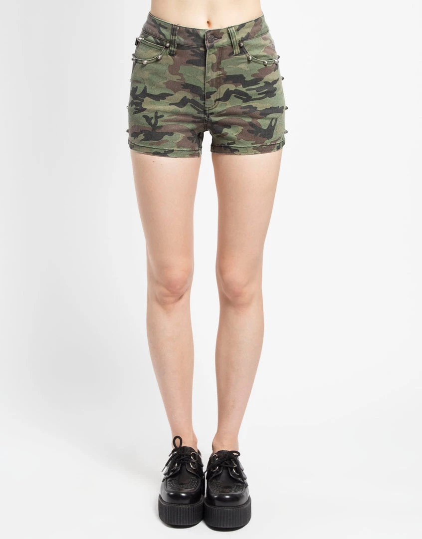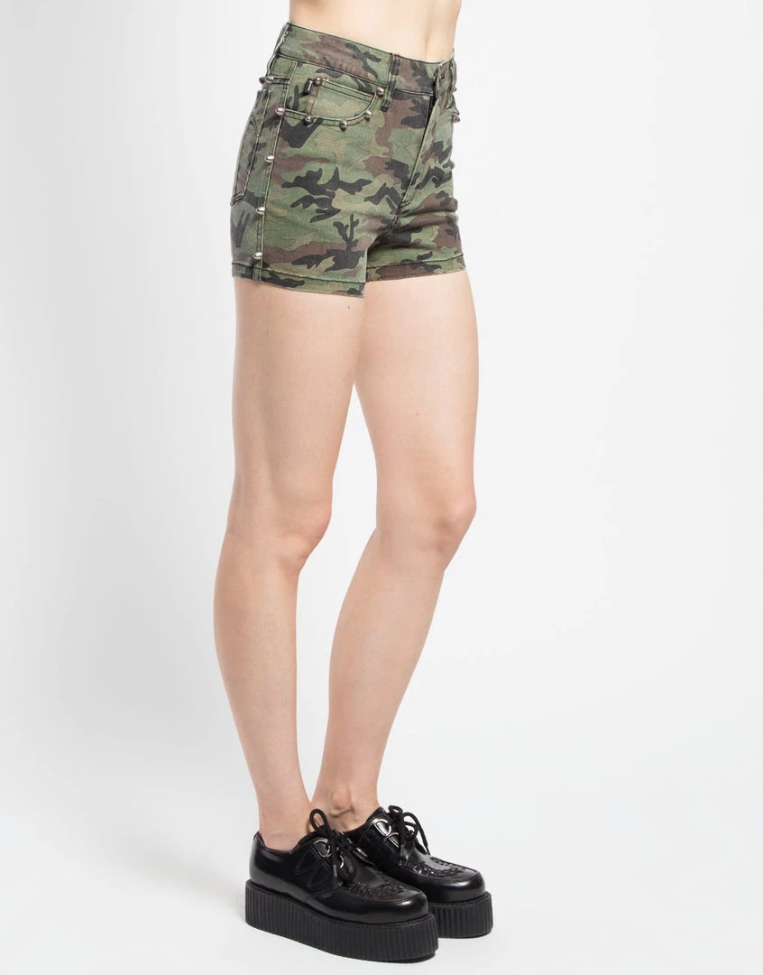 High Waisted Printed Camo short with stud detail on sides and back. Go hard or go home!