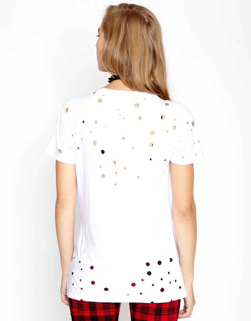 Holey Moley! Your new favorite not-so-basic white tee is made of soft cotton and features a V-neck and holes all over!