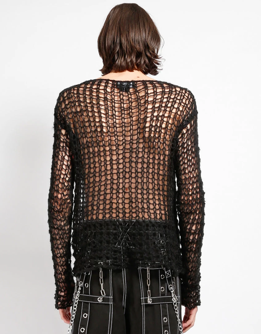 The perfect punk rock layering piece for anyone! Wide knitted, oversized, open hole sweater.