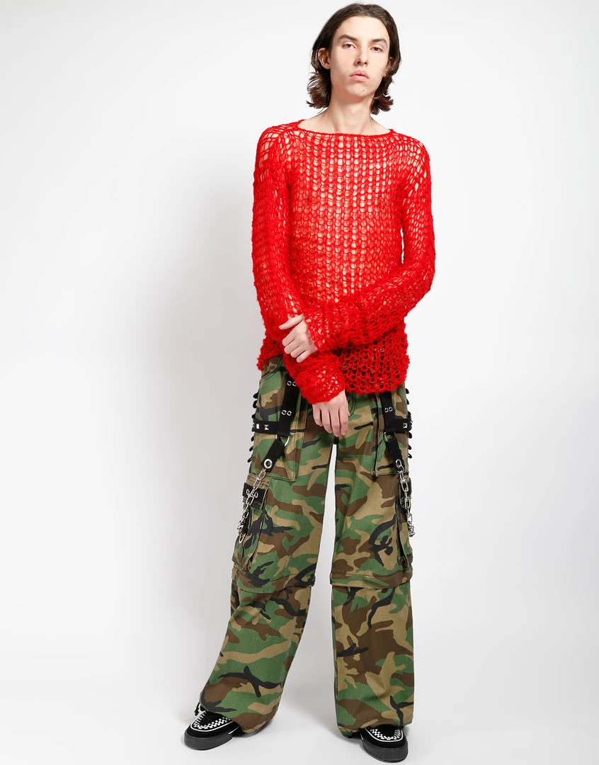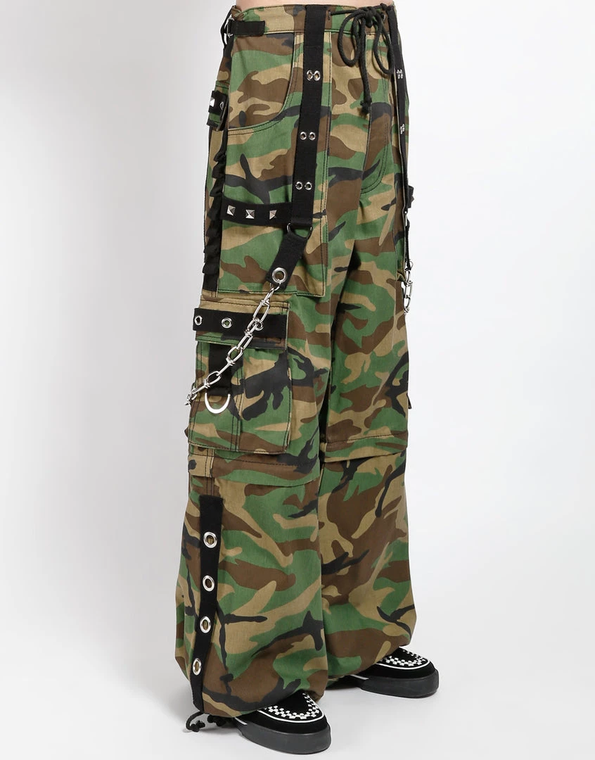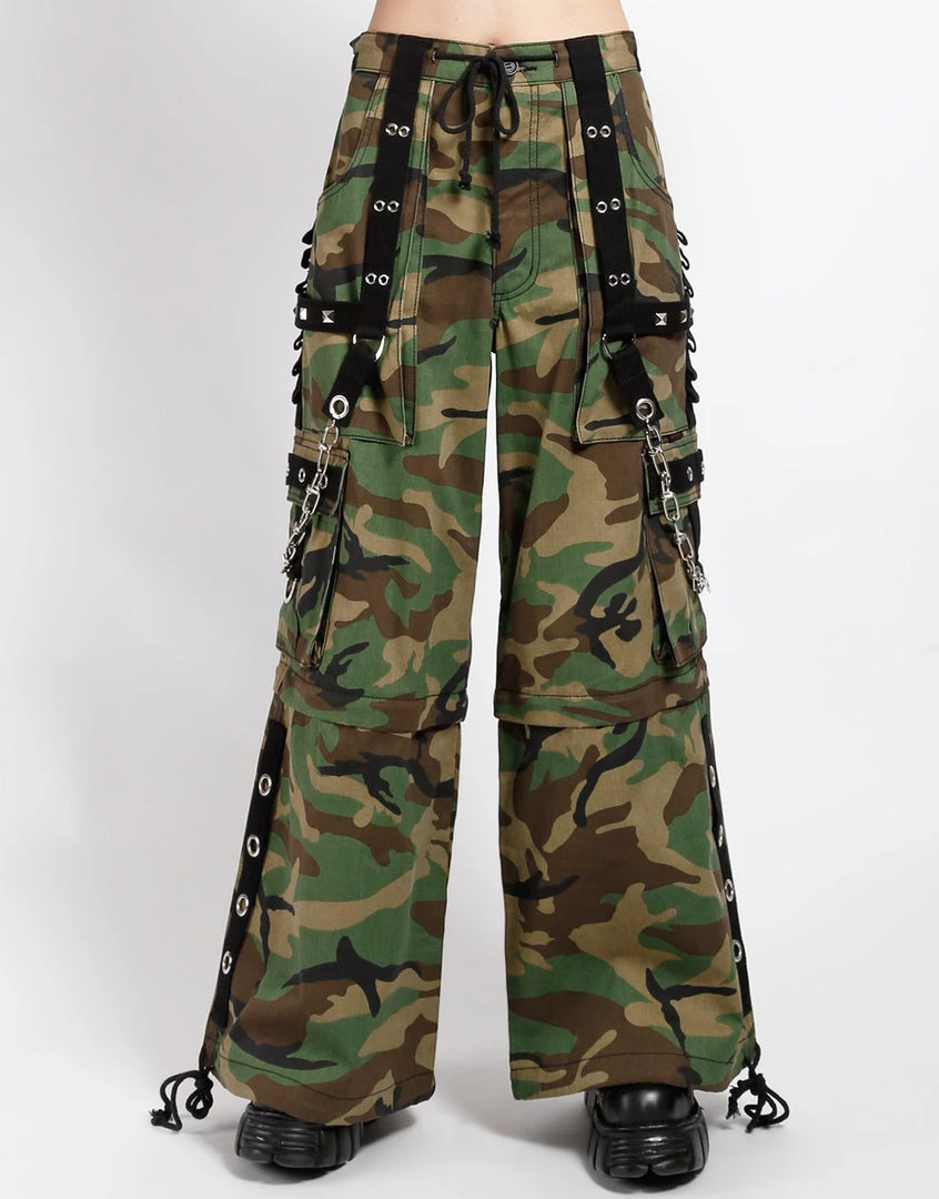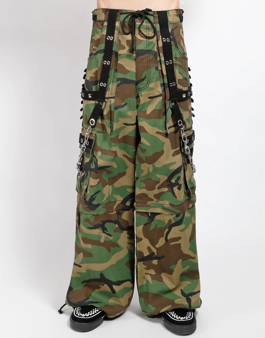 Accept no imitations! From the originator of all things DarkStreet, these camouflage studded pants zip off into shorts and feature removable chains, adjustable ankles, D-rings, and deep pockets.