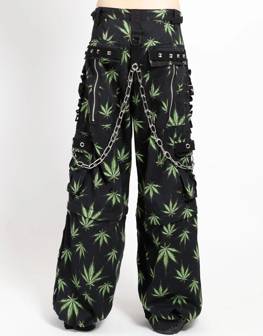 Accept no imitations! From the originator of all things DarkStreet, these grass print studded pants zip off into shorts and feature removable chains, adjustable ankles, D-rings, and deep pockets.