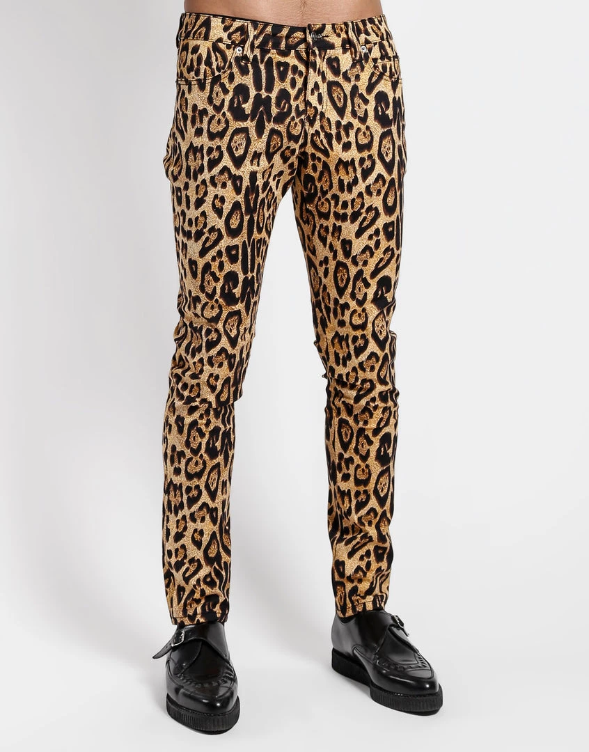 Our signature men’s skinny printed rocker jean in black plaid features classic five-pocket slim fit stretch denim with silver rivets, zip fly & button closure.