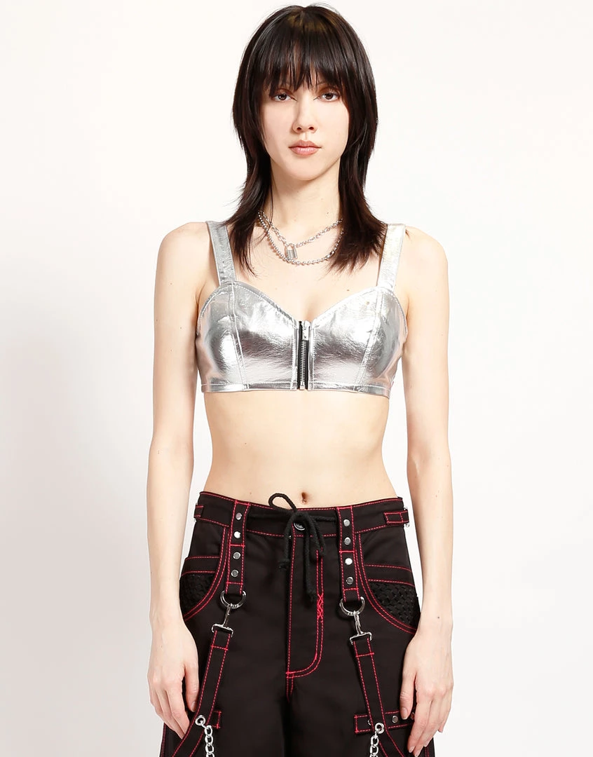 SKU: trippnyc-com-6711775822009 Categories: Tops, Women Tags: Appear, Crop, Faux leather, Metallic, Tops, Women, Woo_import_1, Zipper
