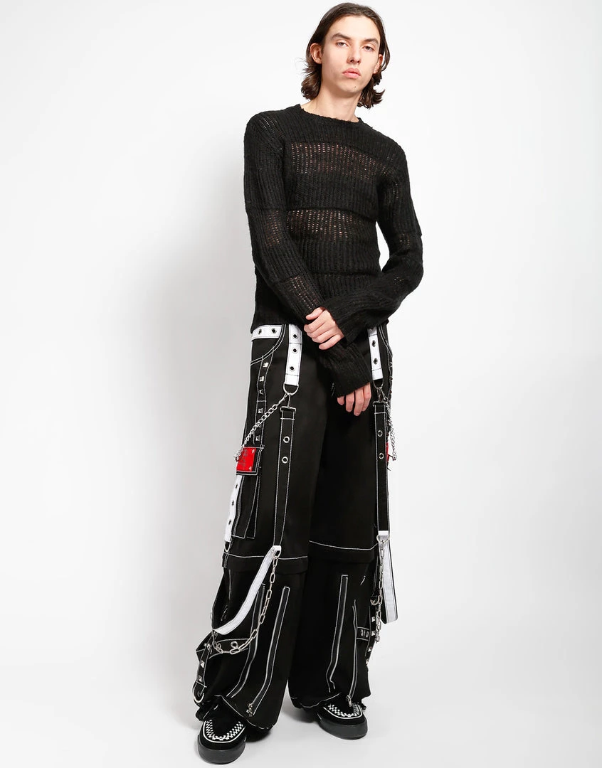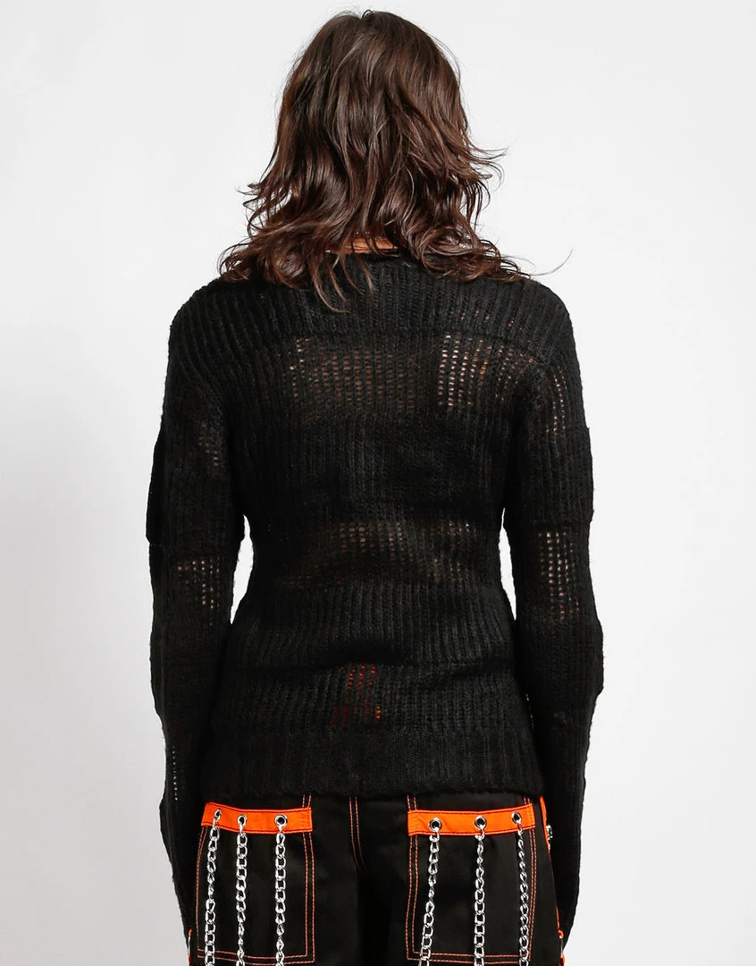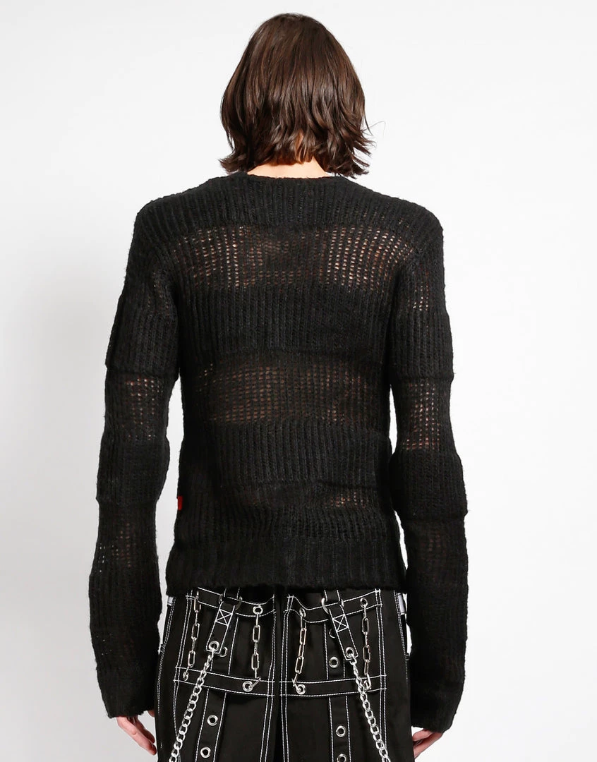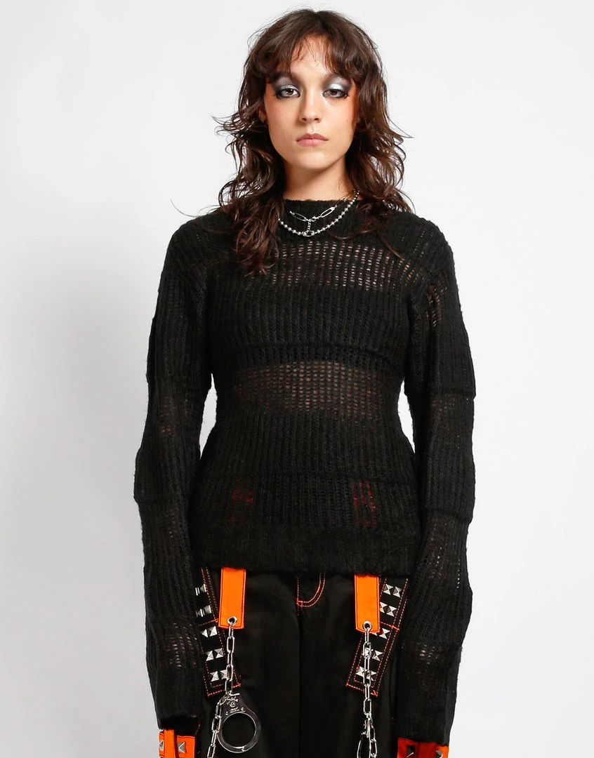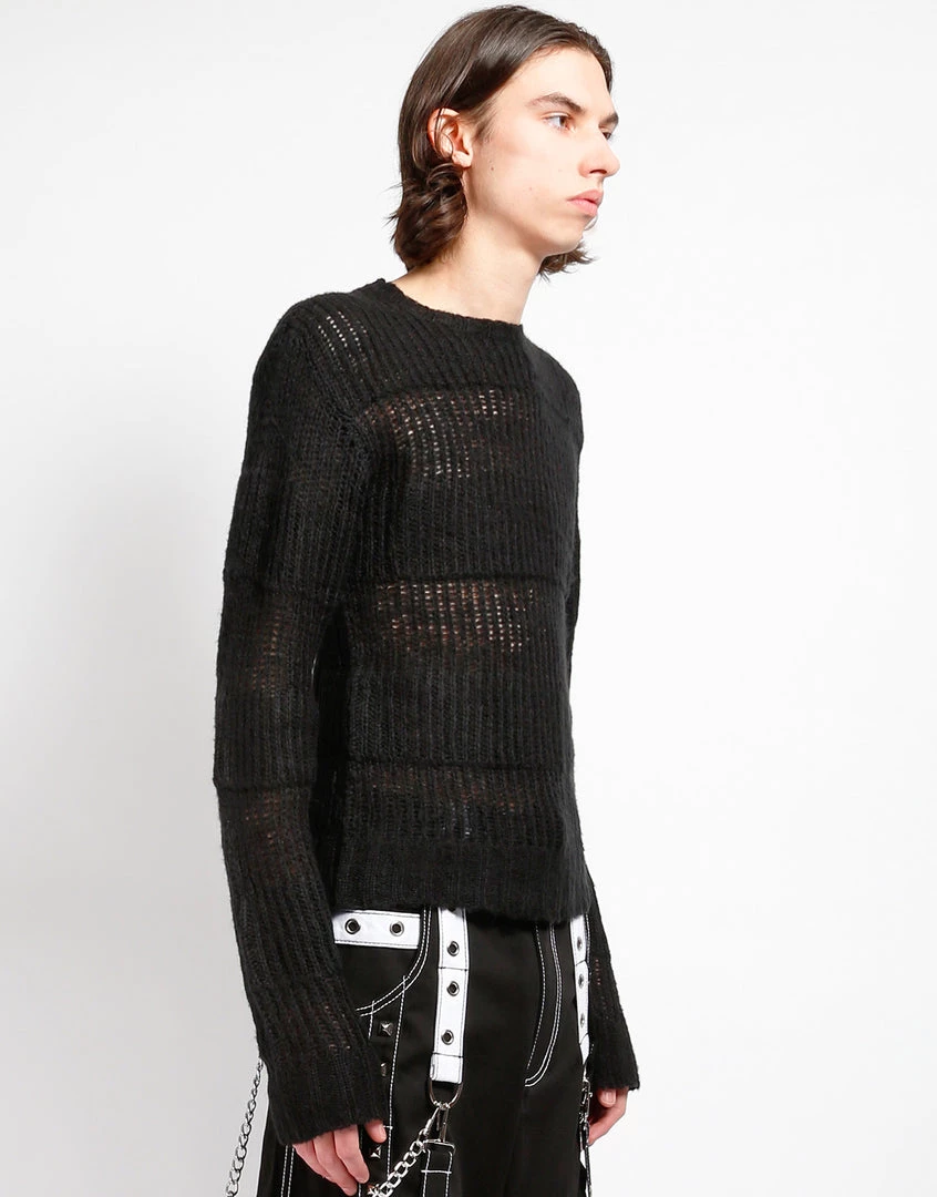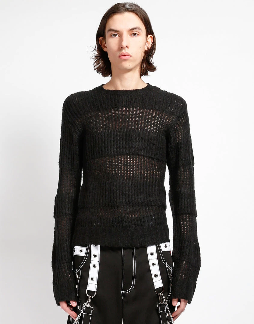 This black stripe on stripe acrylic knit sweater features loose construction and long sleeves which means it looks perfectly lived in before you even put it on!