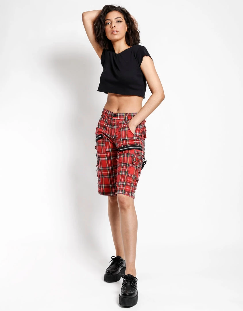 Finally, shorts that don’t suck! These punk shorts feature removable bondage straps, exposed zippers, an adjustable waist, and a zip and button fly.