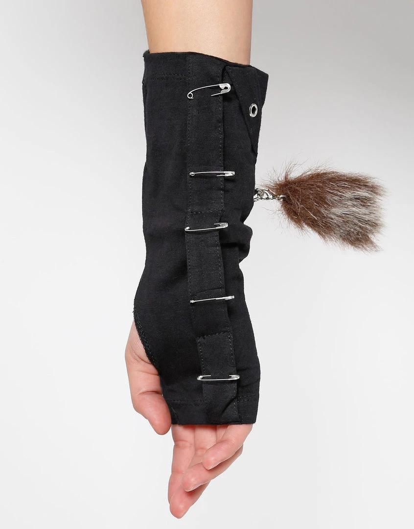 SAFETY PIN ARMWARMER : Featuring removable faux rabbit tail