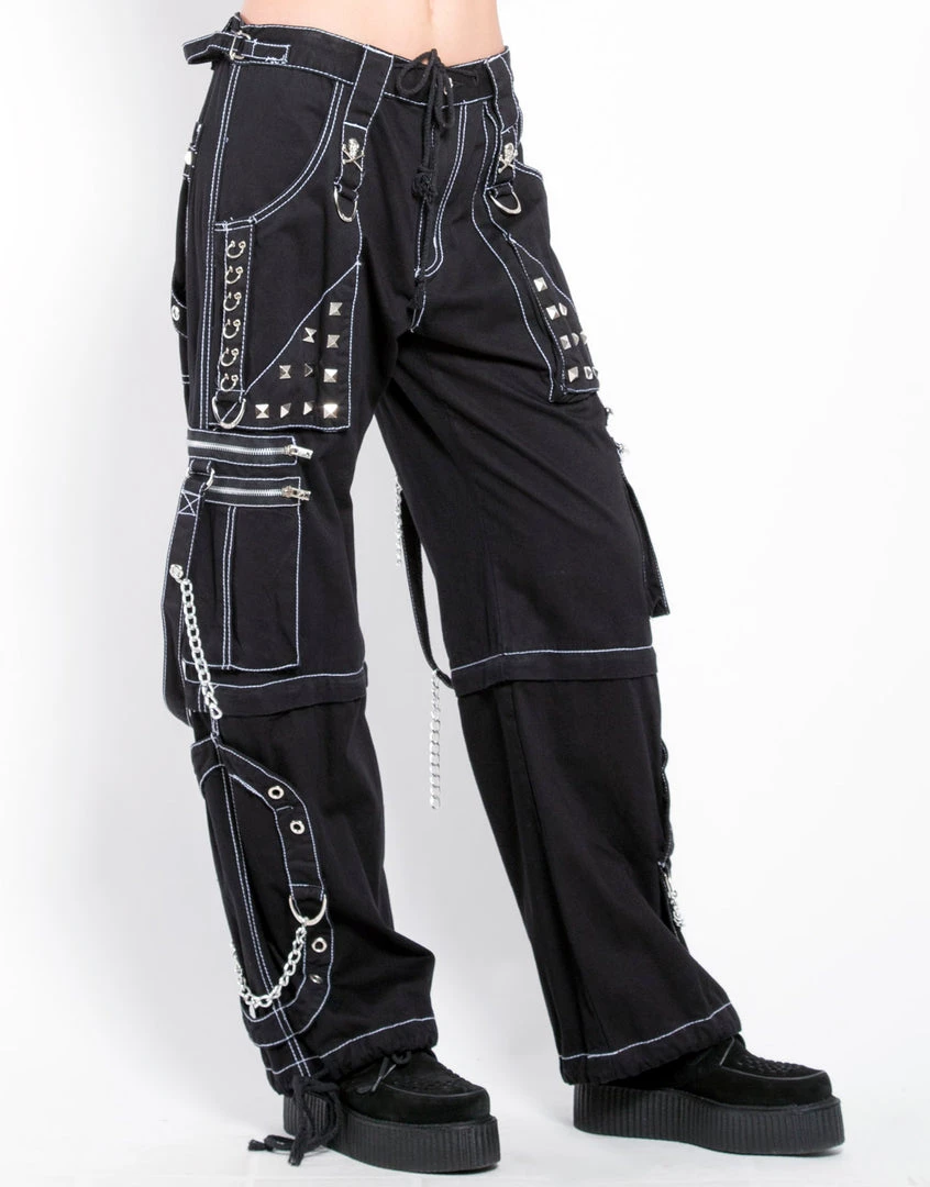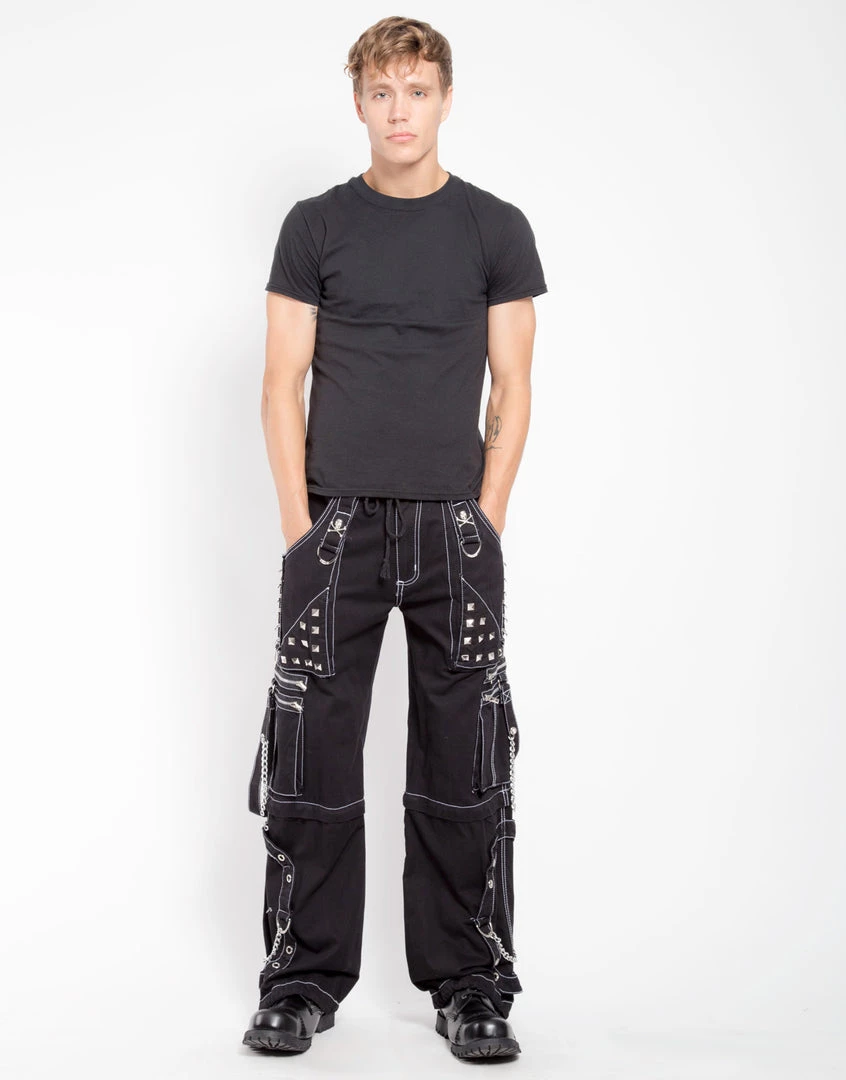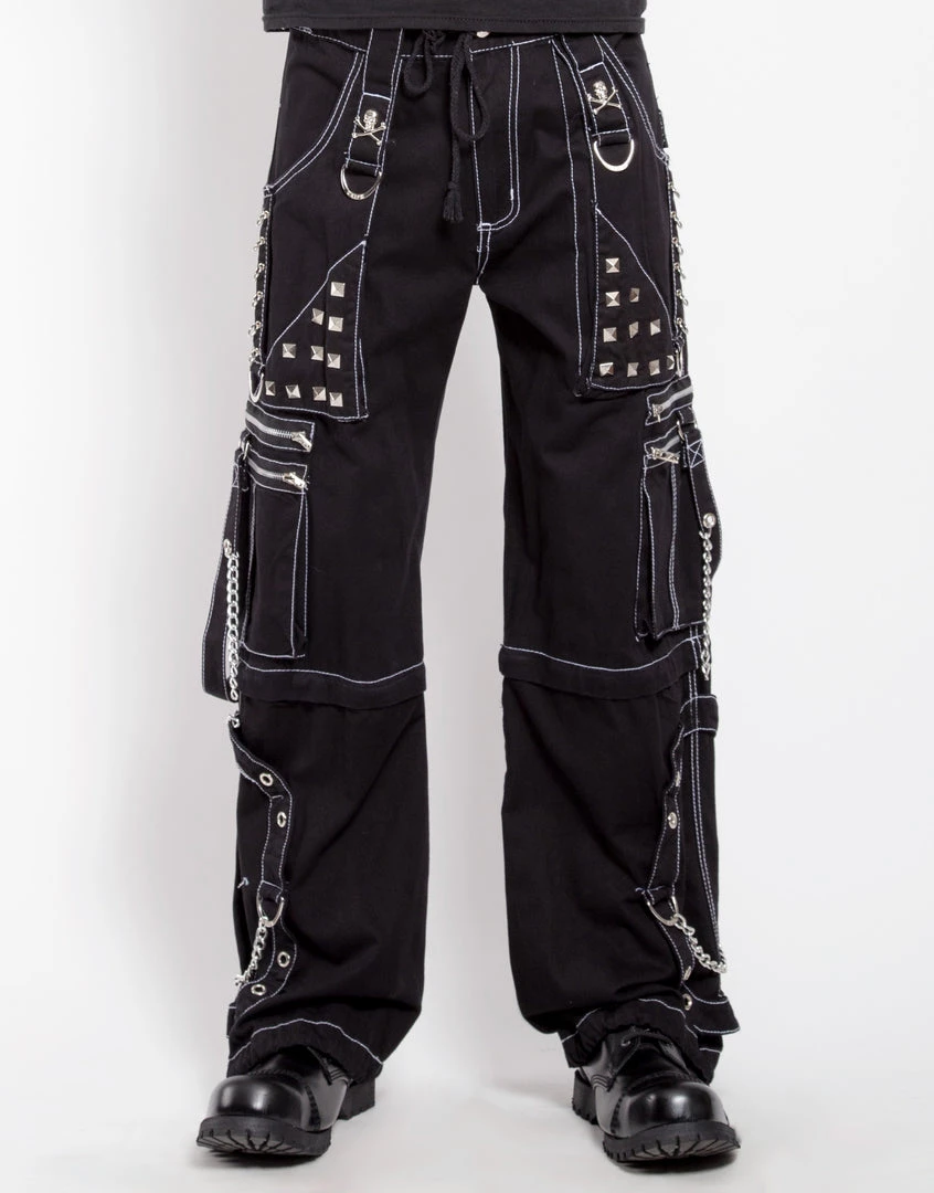 Accept no imitations! From the originator of all things DarkStreet, these studded black pants with white stitching zip off into shorts and feature removable chains, adjustable ankles, D-rings, and zipper cargo pockets.