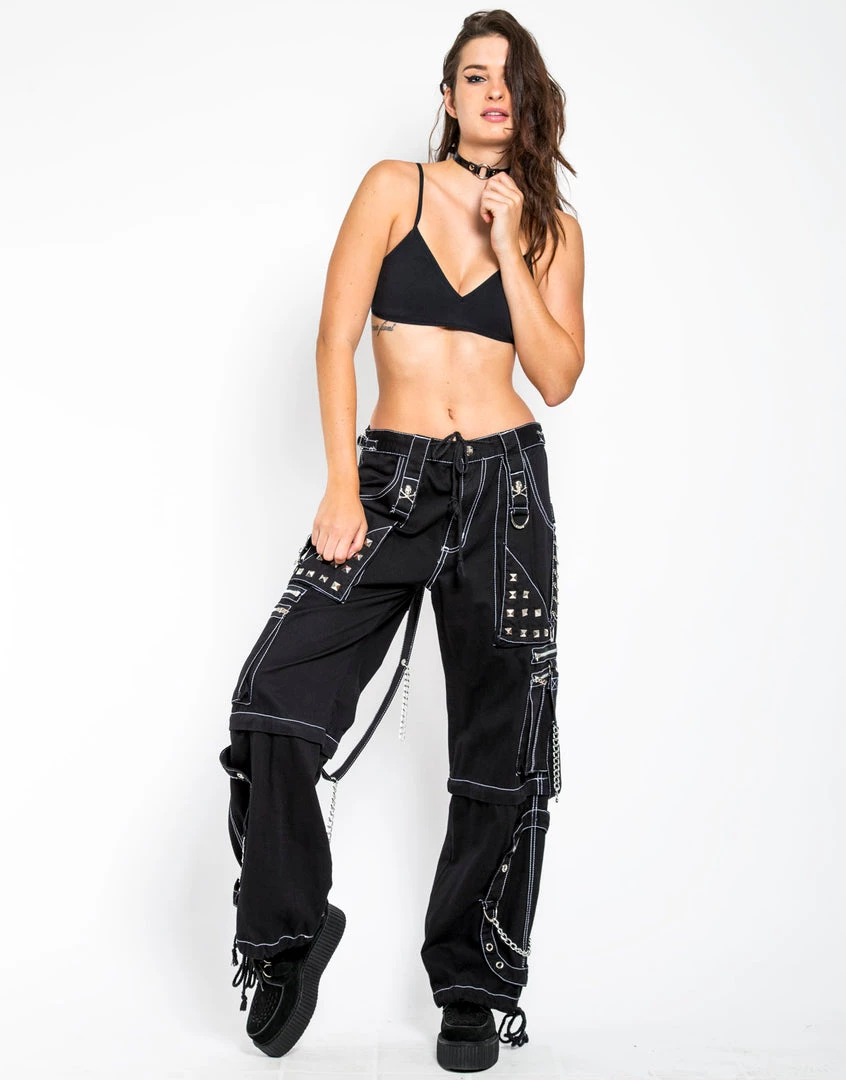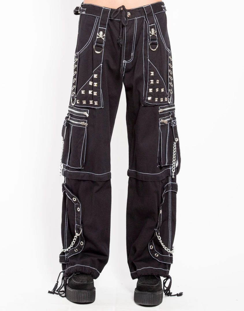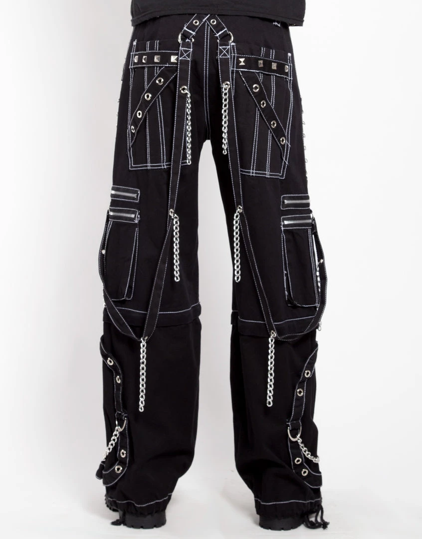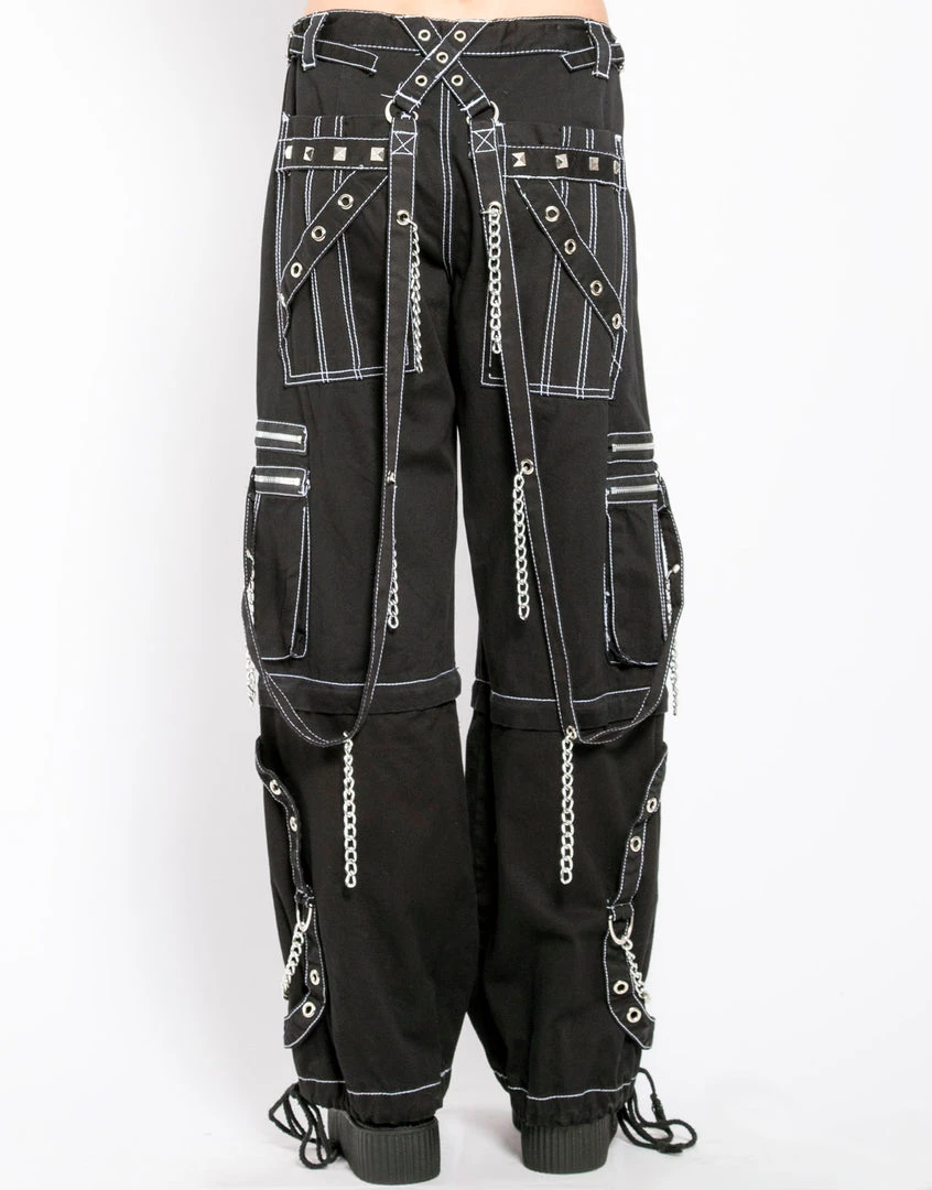 Accept no imitations! From the originator of all things DarkStreet, these studded black pants with white stitching zip off into shorts and feature removable chains, adjustable ankles, D-rings, and zipper cargo pockets.