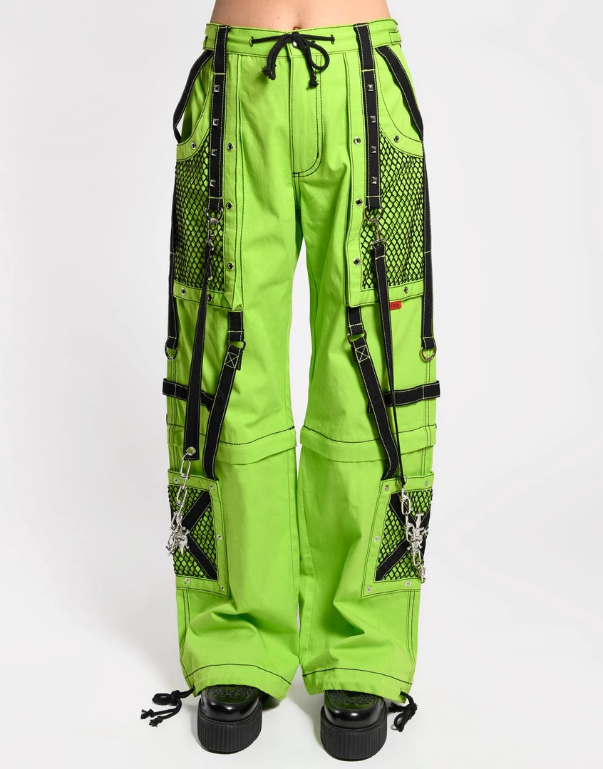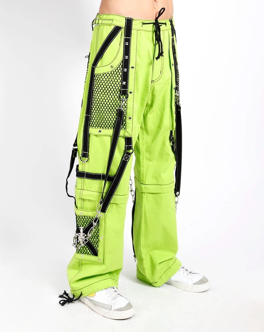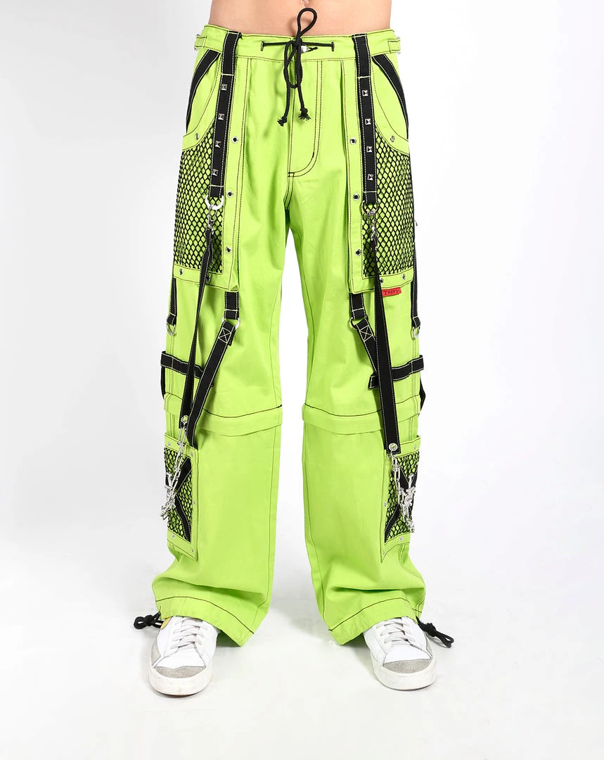 Accept no imitations! From the originator of all things DarkStreet, these lime and black studded pants zip off into shorts and feature removable chains, adjustable ankles, zippers, D-rings, and deep pockets.