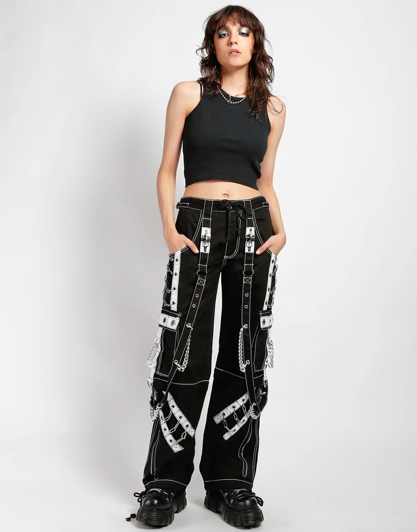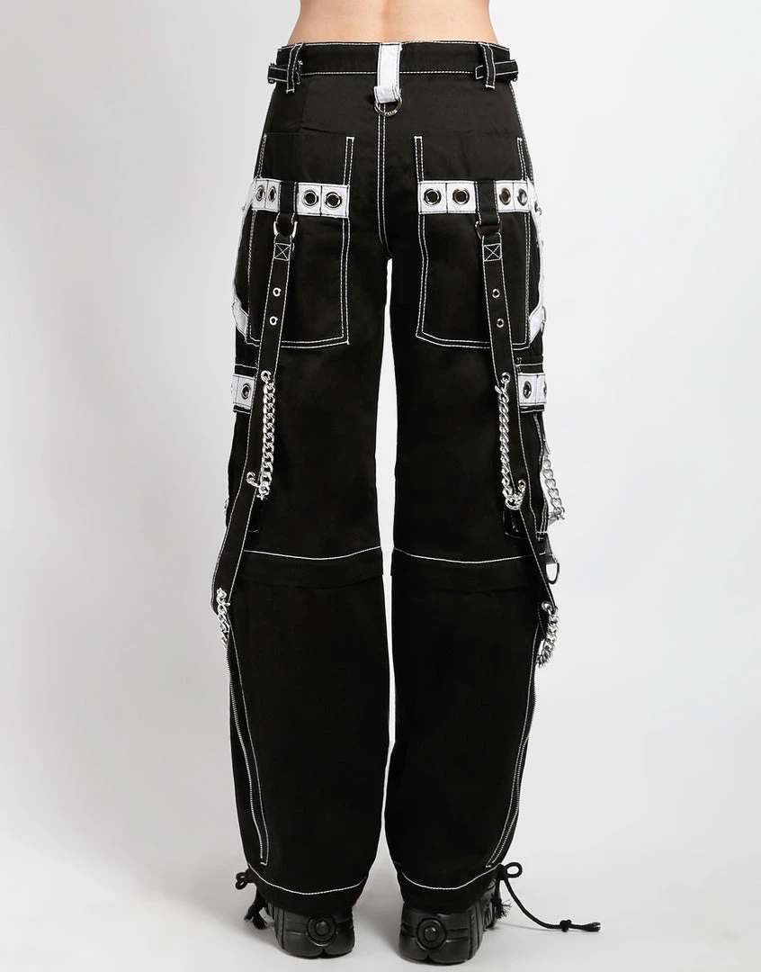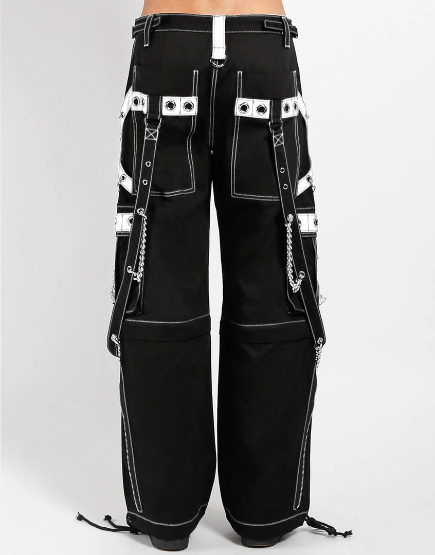 Accept no imitations! From the originator of all things DarkStreet, these black pants feature pants zip off into shorts, white stitching, removable straps, adjustable ankles, D-rings, clasps, and deep pockets.