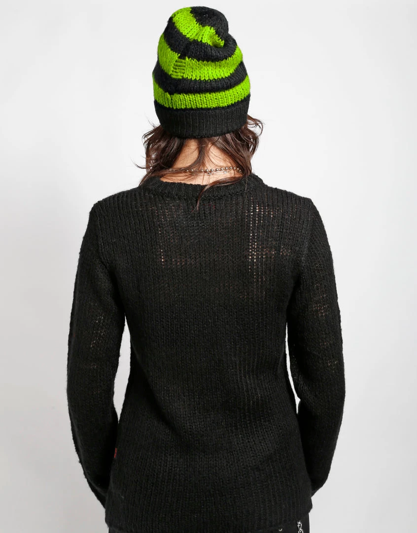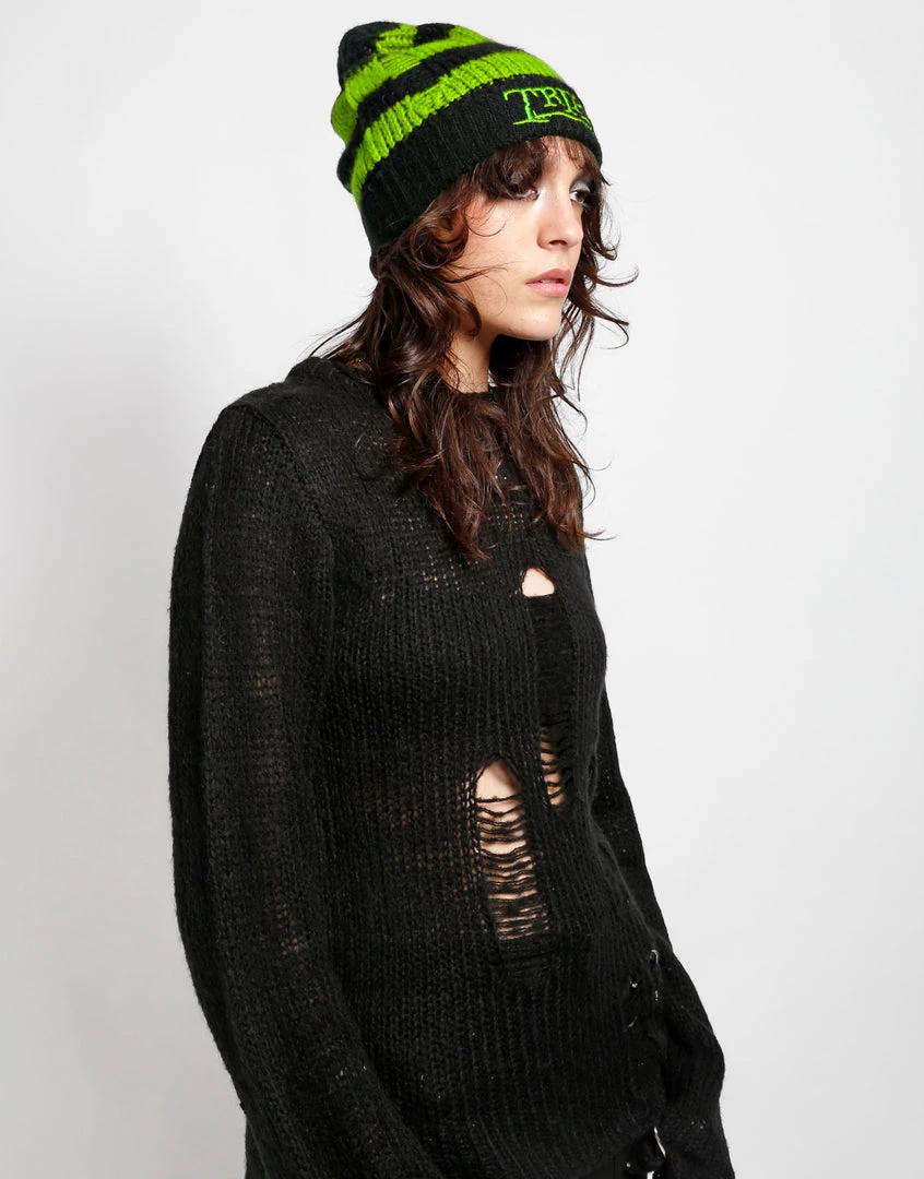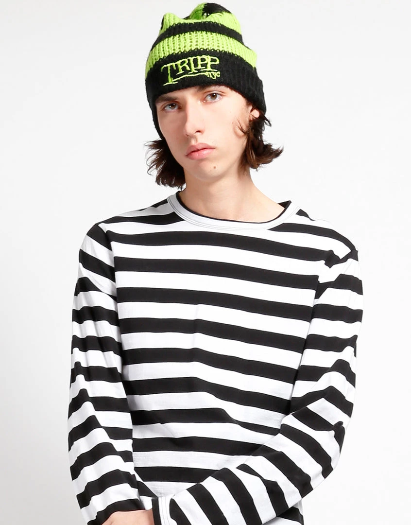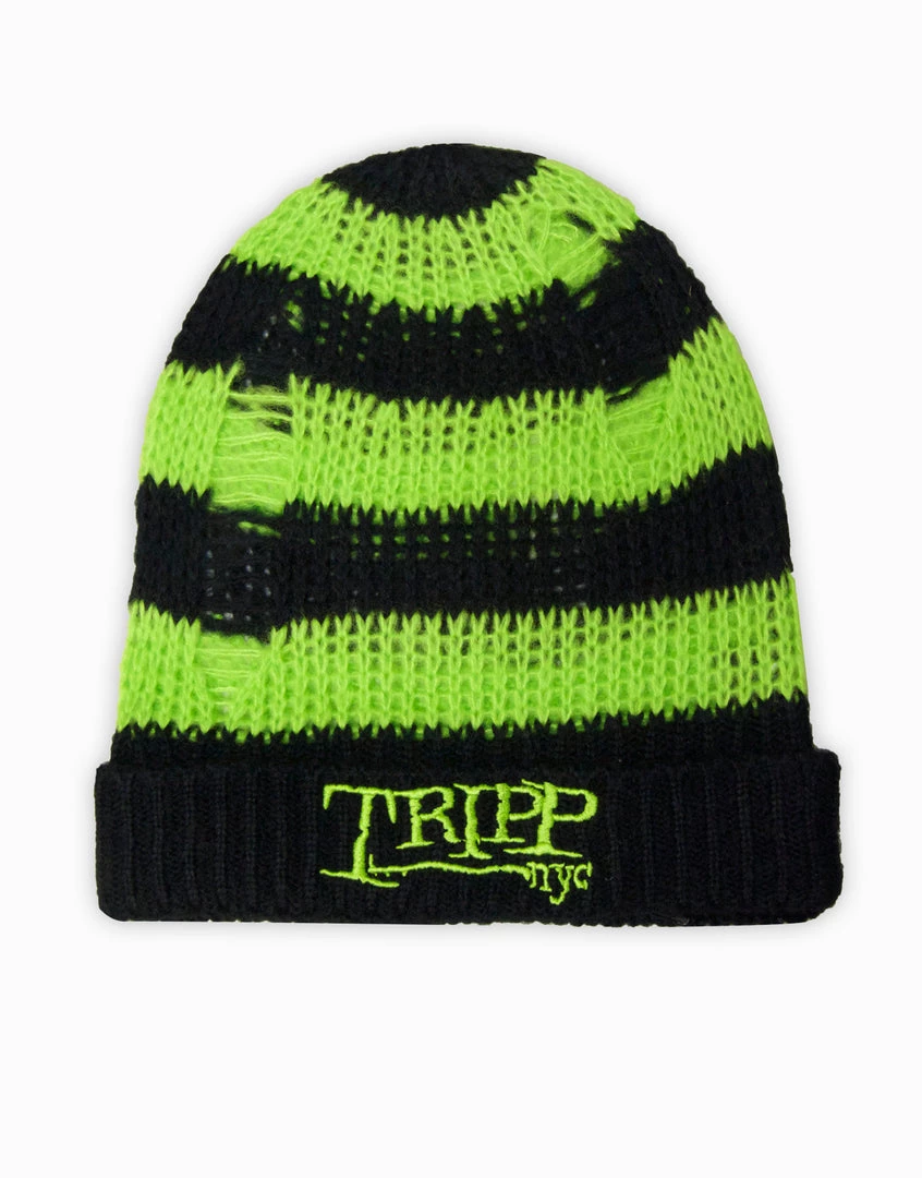 Tripp NYC logo Stripe Beanie : Black/Lime Green