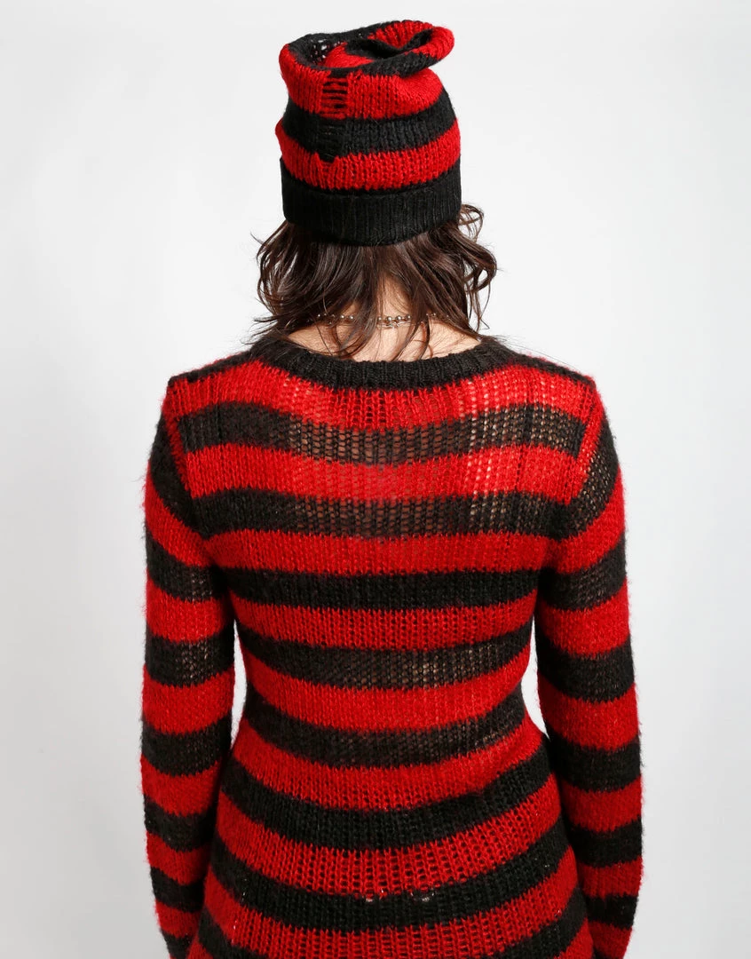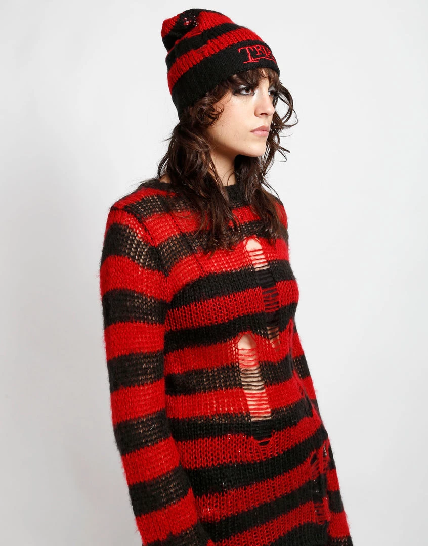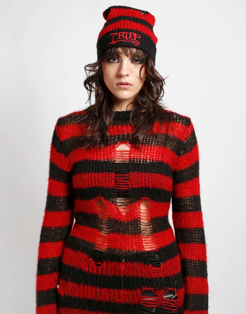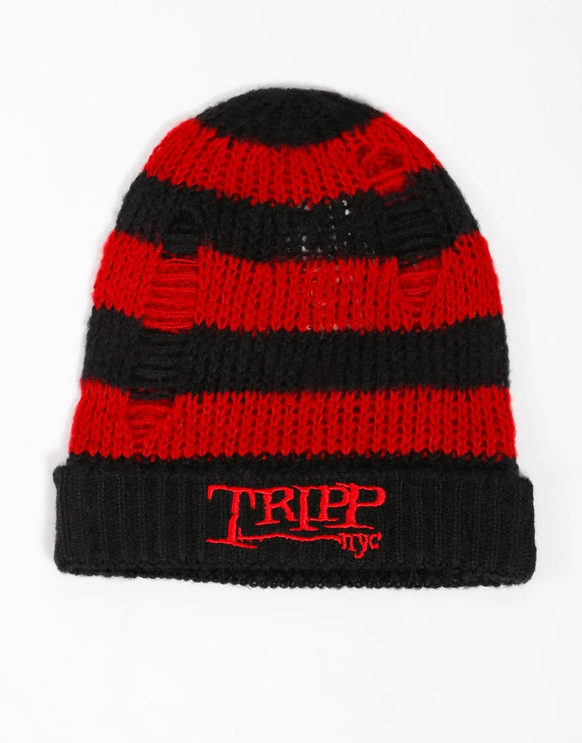 Tripp NYC logo Stripe Beanie : Black/RedÂ