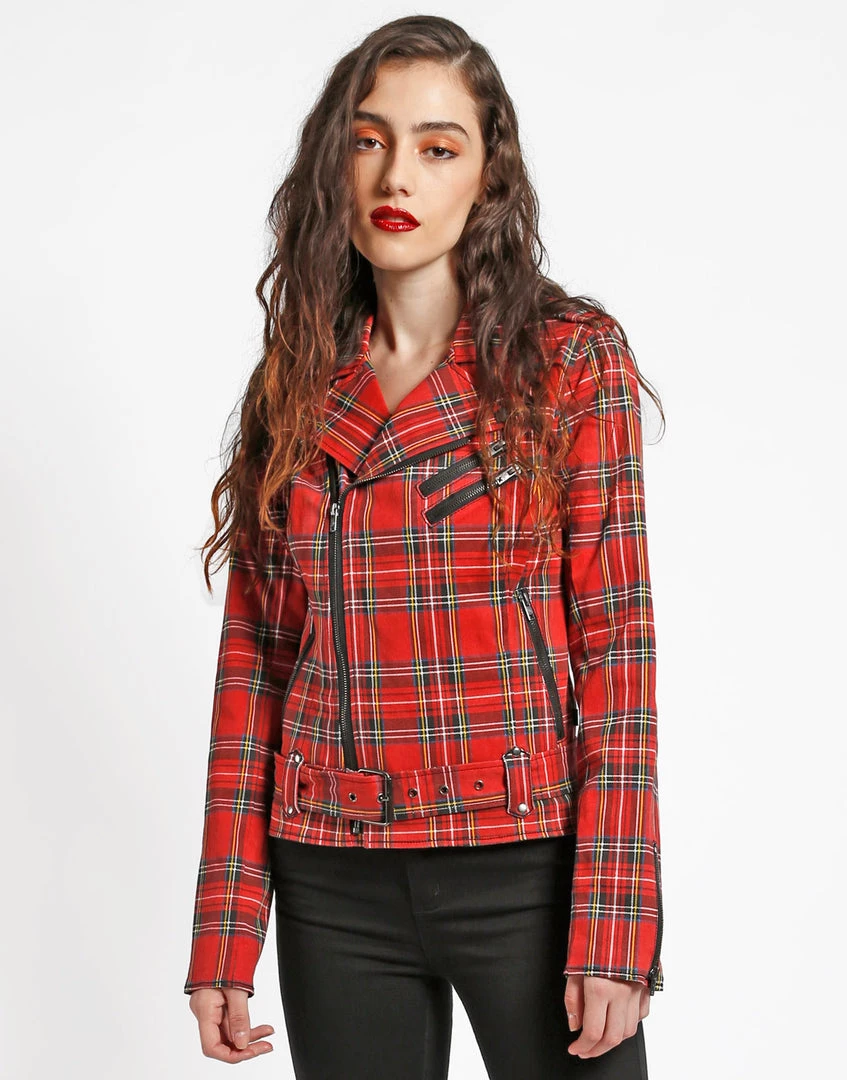 Trippnyc.com WILD CHILD MOTO RED PLAID Women