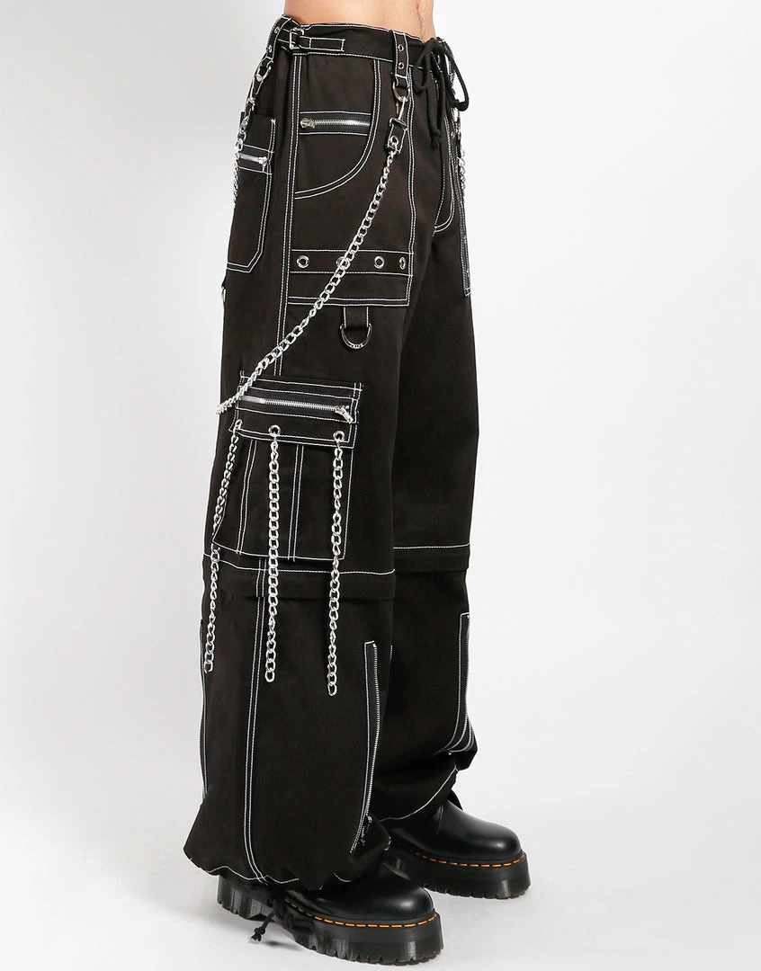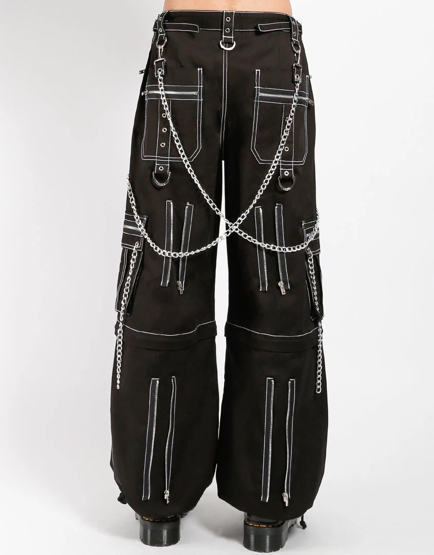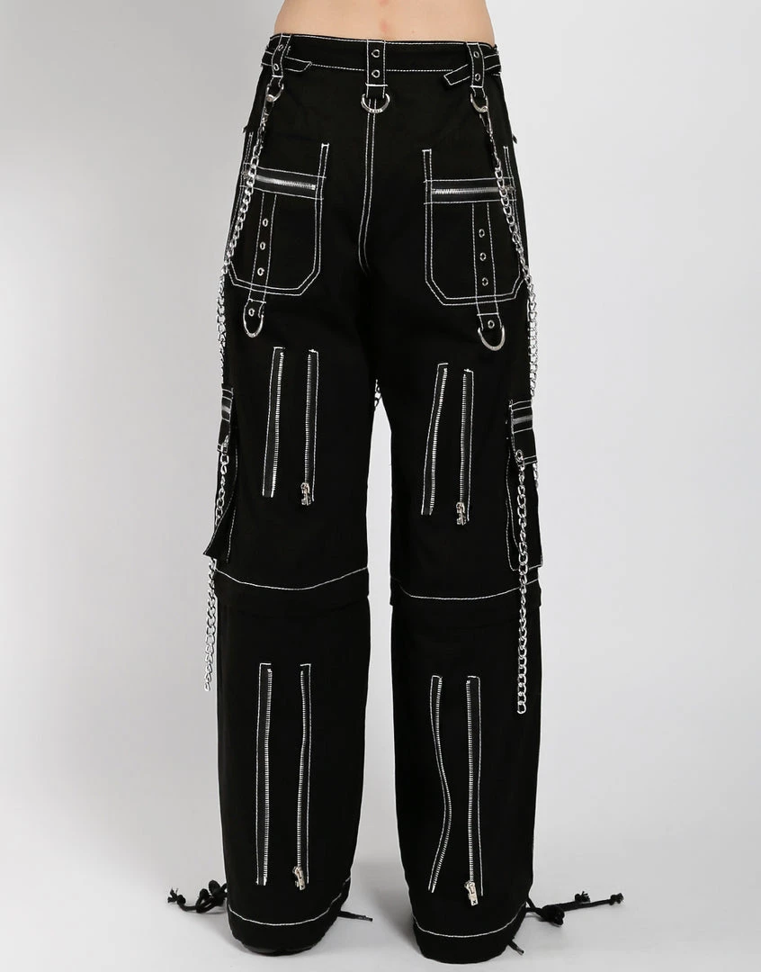 Accept no imitations! From the originator of all things DarkStreet, these Black and White stitched pants zip off into shorts and feature removable chains, adjustable ankles, D-rings, grommets, and deep pockets.