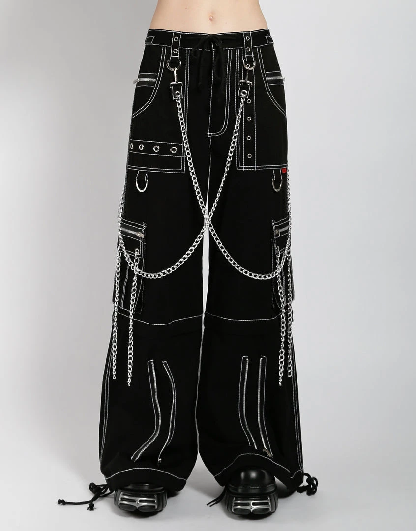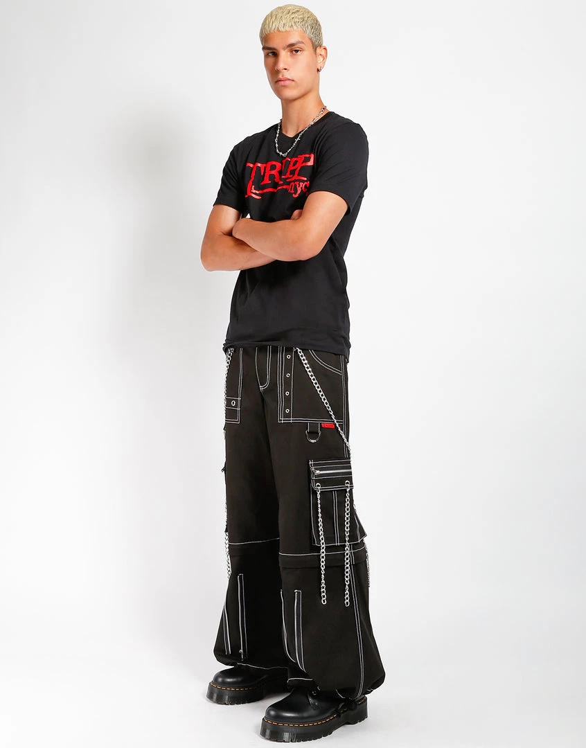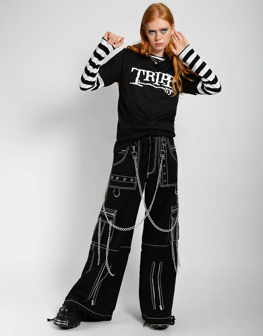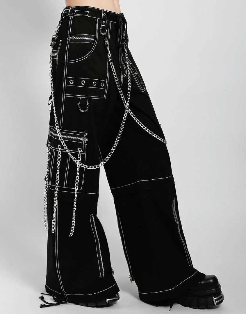Accept no imitations! From the originator of all things DarkStreet, these Black and White stitched pants zip off into shorts and feature removable chains, adjustable ankles, D-rings, grommets, and deep pockets.