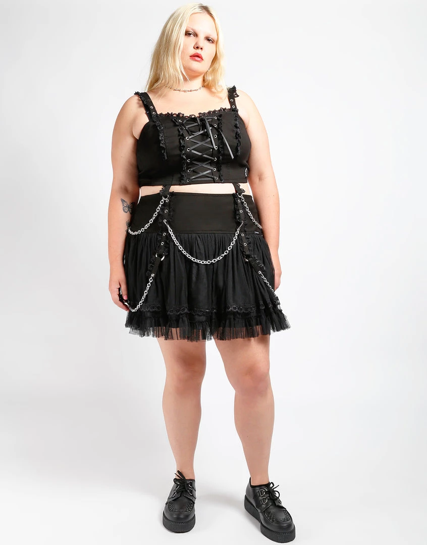 Curve Size Darkstreet Lolita: Chiffon Tutu Skirt in all black