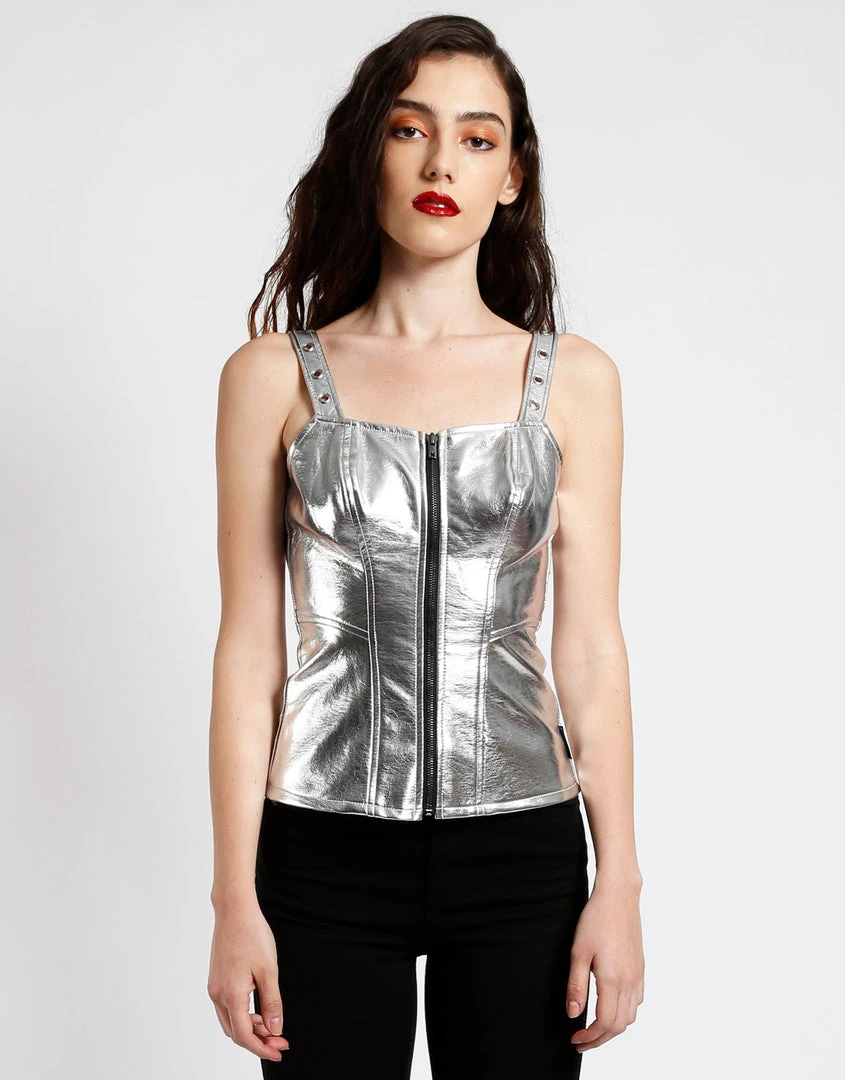 Trippnyc.com Women METALLIC ZIP CORSET