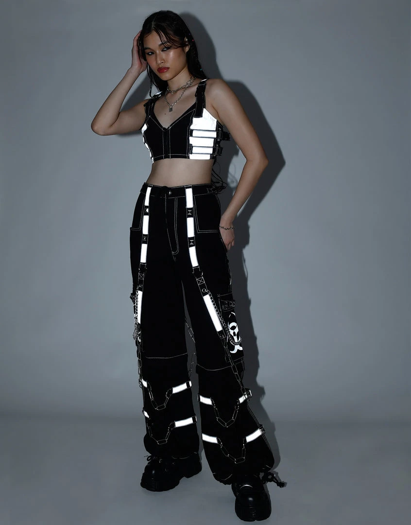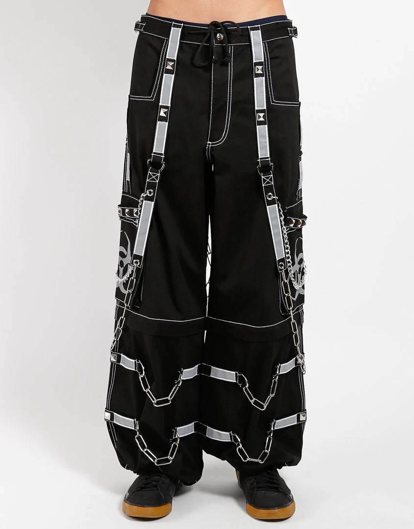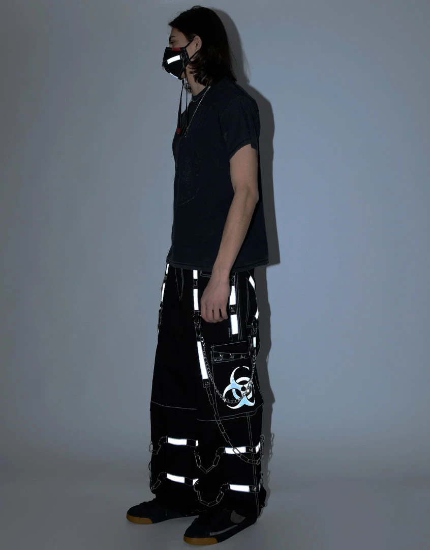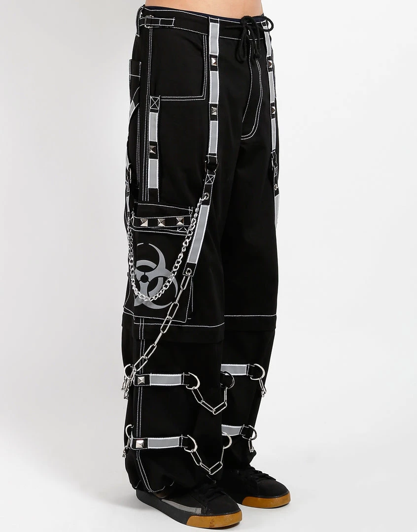 Accept no imitations! From the originator of all things DarkStreet, these pants zip off into shorts and feature removable straps and chains, reflective BIOHAZARD print and details, contrast stitching, adjustable ankles, D-rings, and deep pockets.