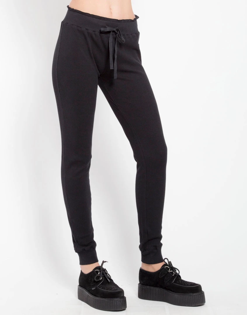 Jogging never looked so good! Keep warm and comfy in these grungy thermal leggings. Relaxed fit, super cozy jogger with elastic banding at waist & ankles, and draw string closure at waist.