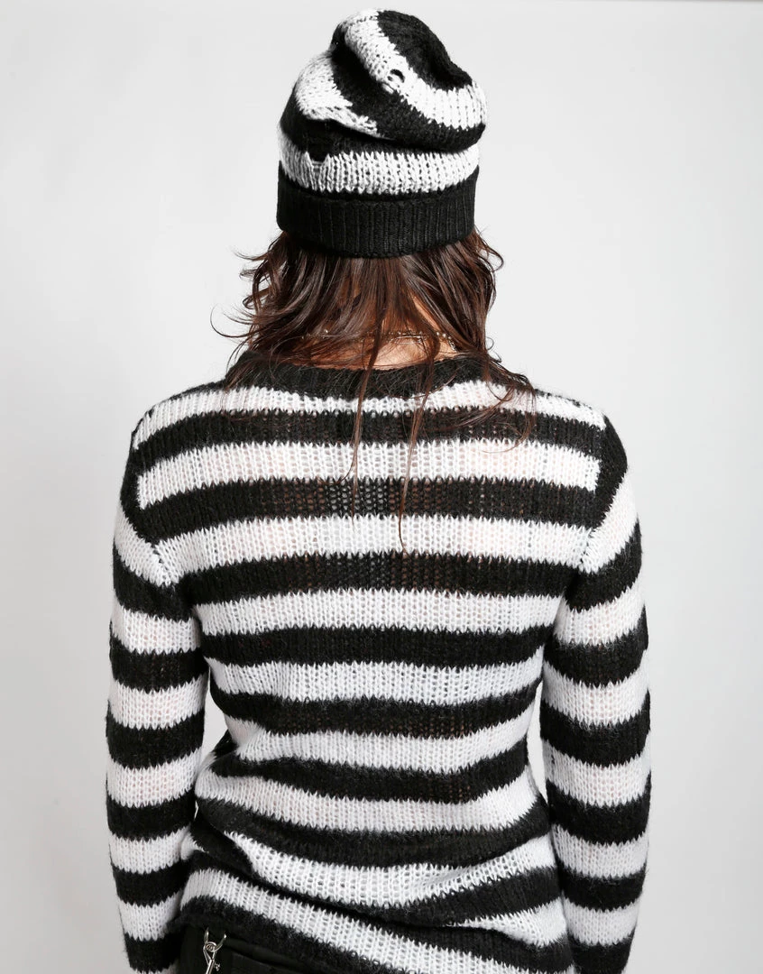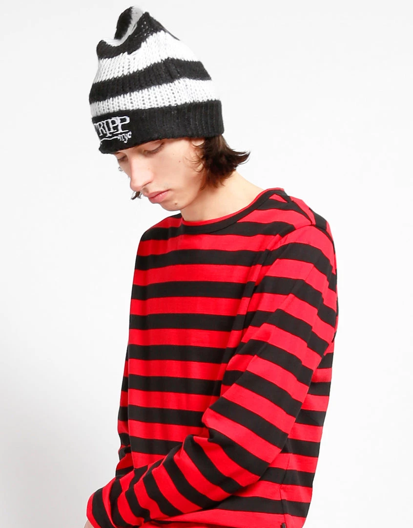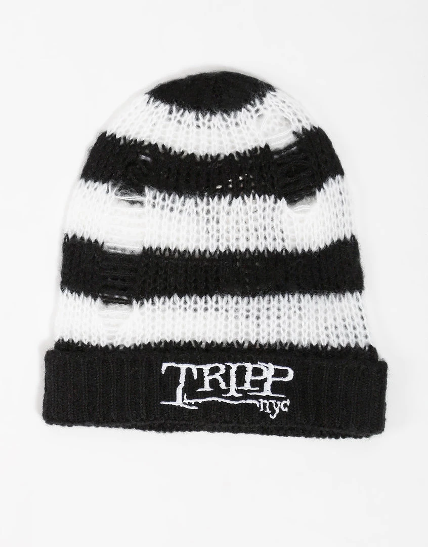 Tripp NYC logo Stripe Beanie : Black/White